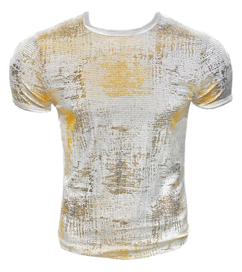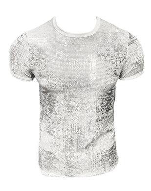 Metallic Leaf Short Sleeve Tee - White Silver