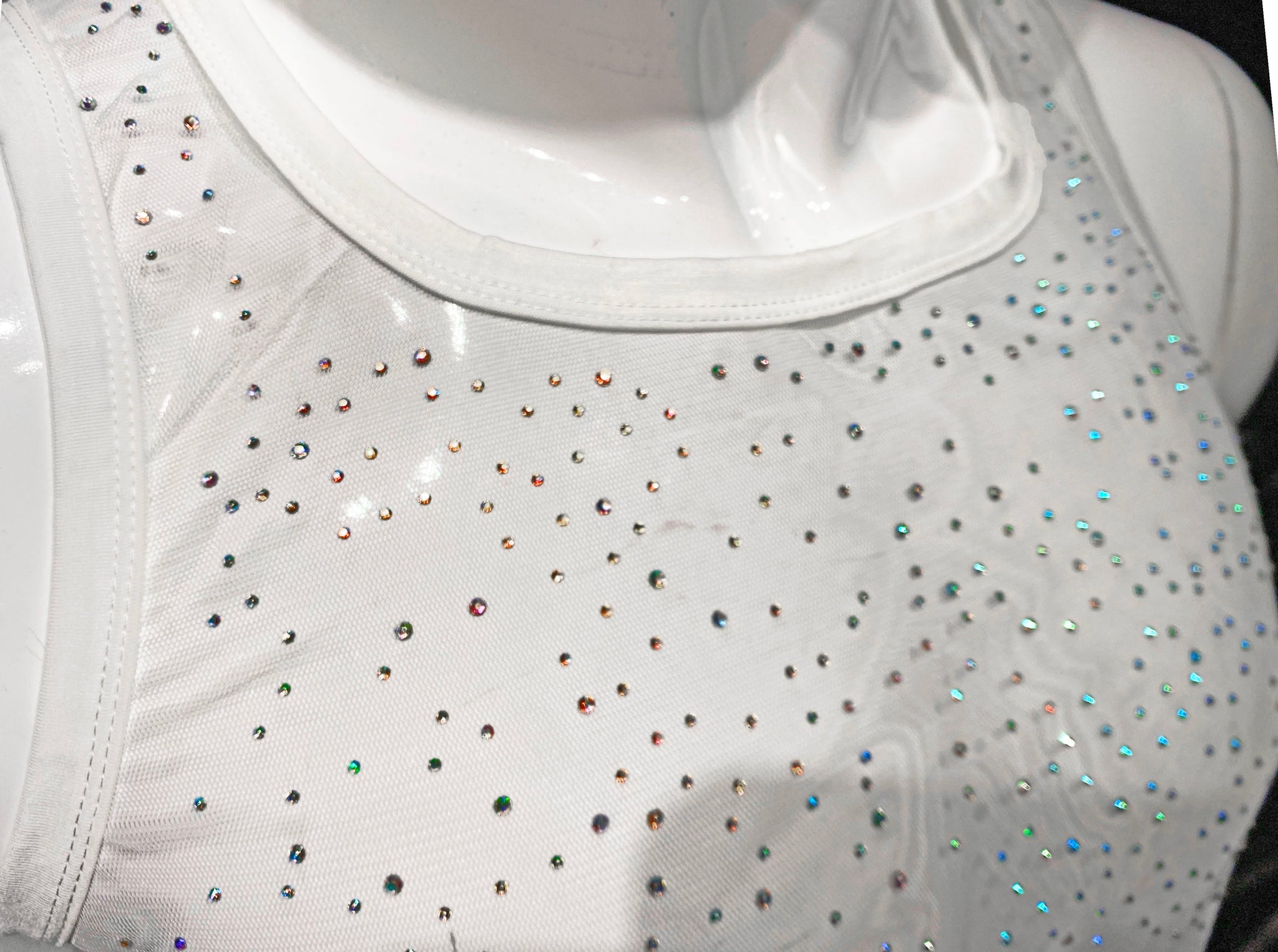 A sparkly, sexy tank with multi color rhinestones.